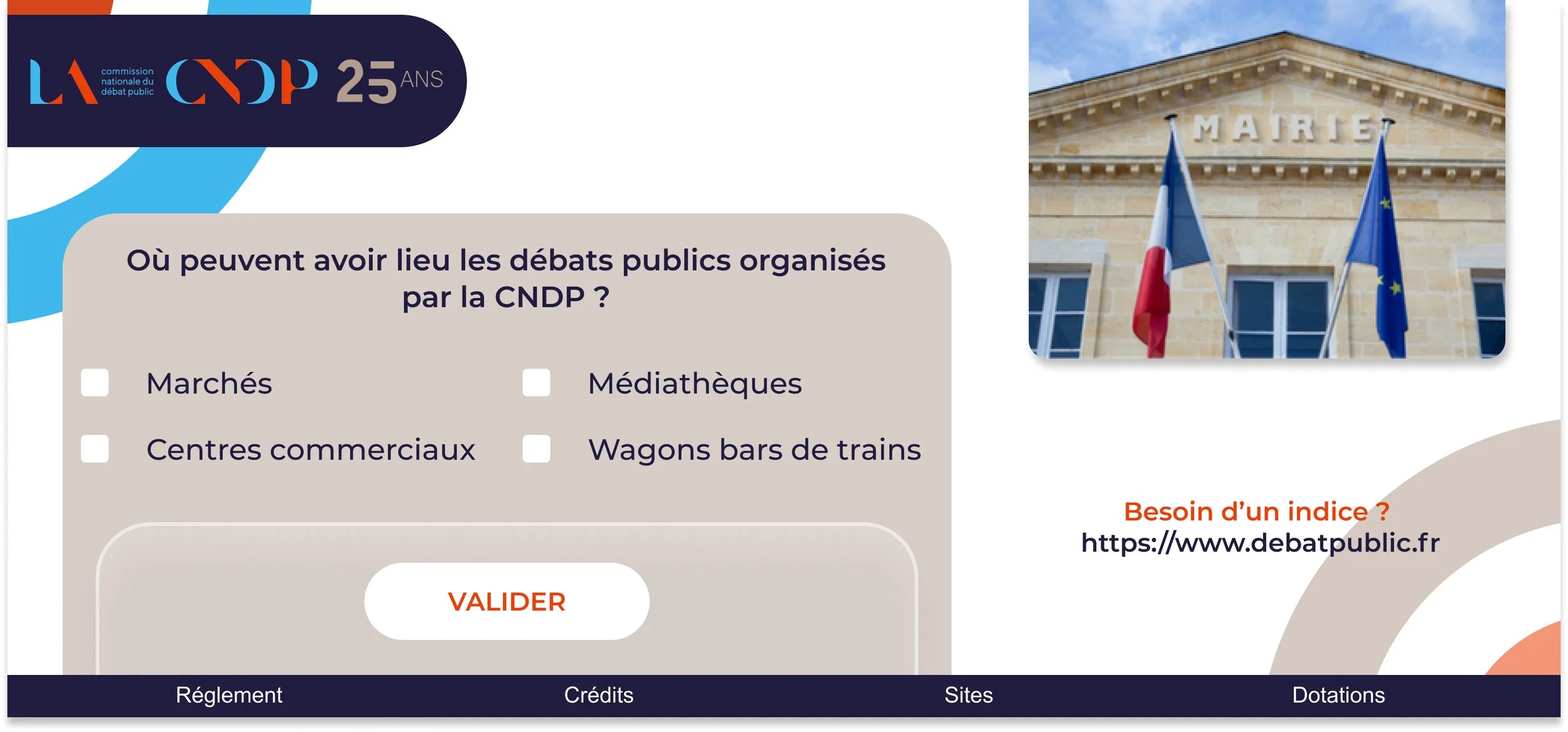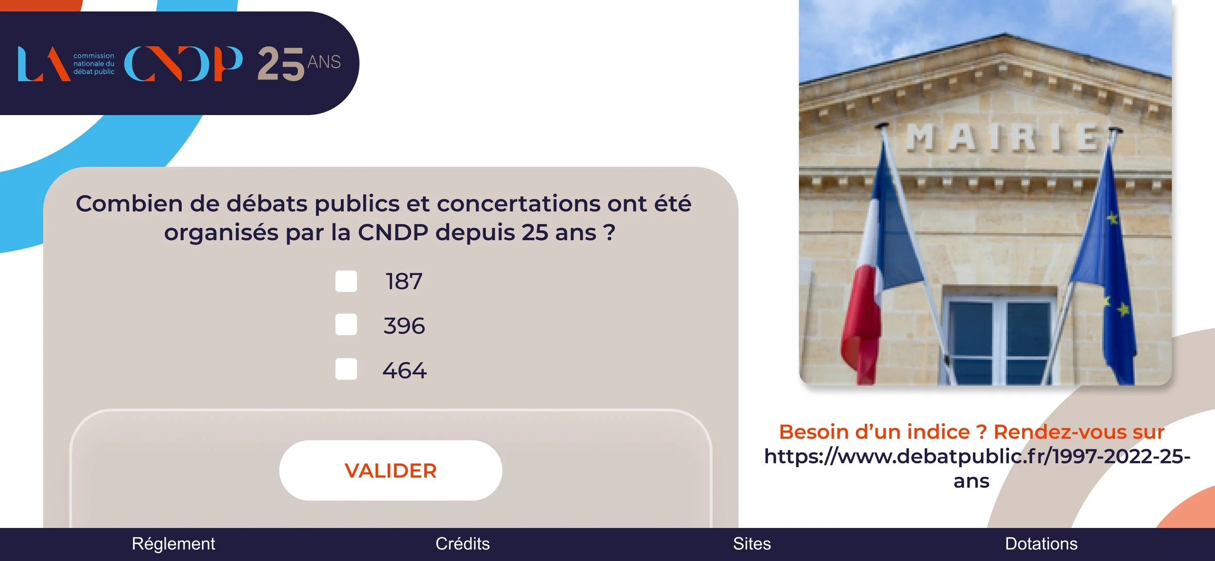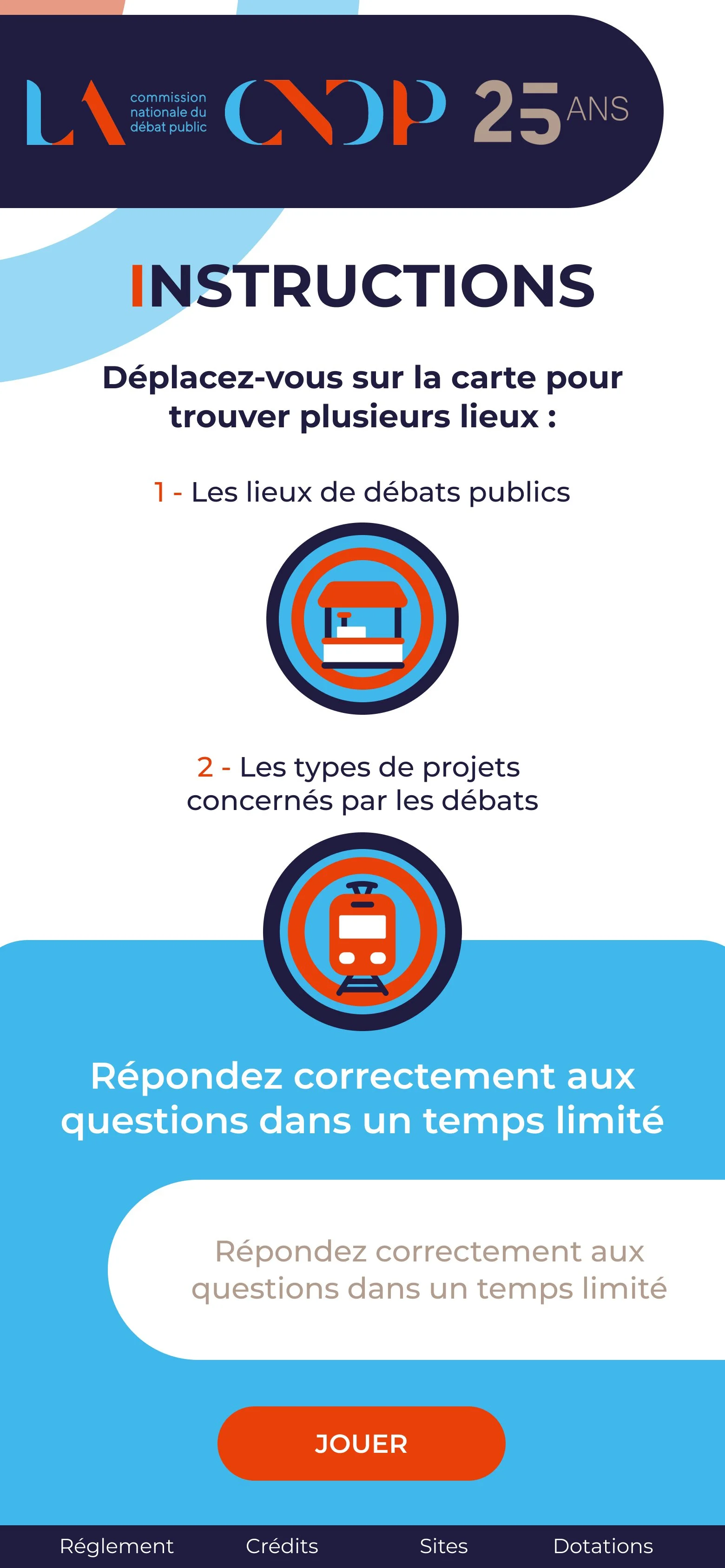 Réalisation des illustrations et de l’UI du jeux-concours des 25 ans de la CNDP (Web & Mobile) et déclinaison des visuels et agencement pour les mails et post réseaux sociaux.