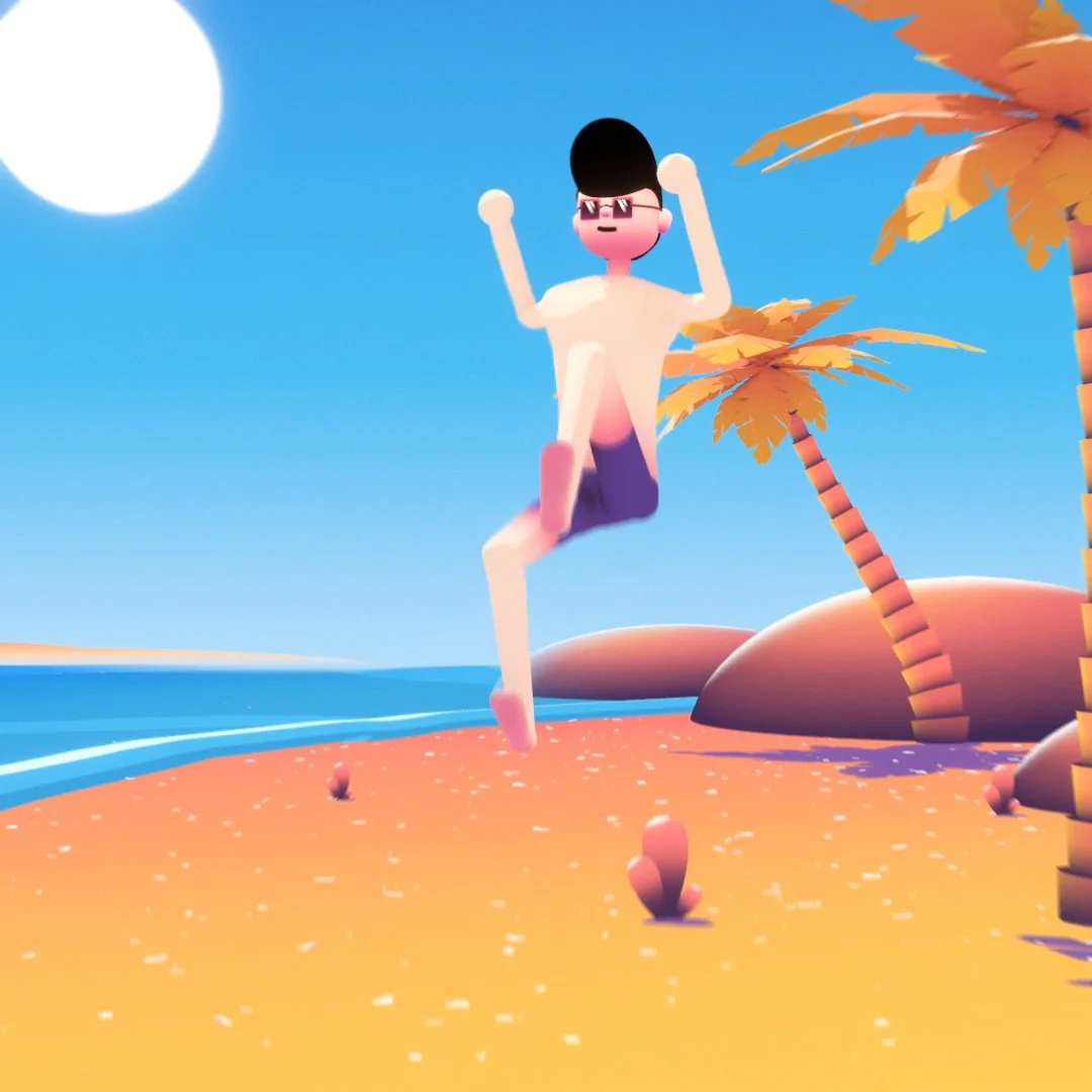 Recherche et exploration artistique d’une animation d’un personnage en utilisant la 3D avec un style plus graphique 2D. Travail de transition entre deux ambiances bien différentes que ce soit en matière de couleur ou d’humeur pour le protagoniste.